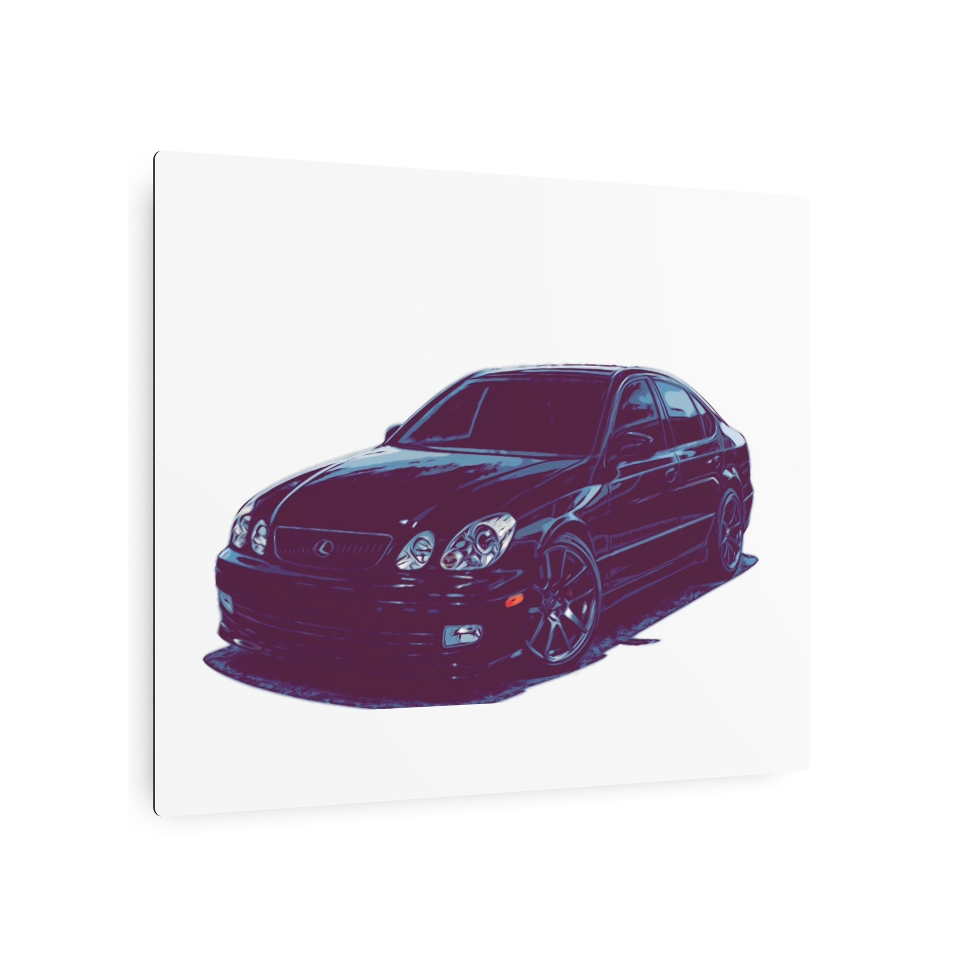 Designed to appeal to enthusiasts who appreciate precision engineering and refined styling, this piece blends modern luxury with street-ready attitude. The illustrated treatment emphasizes smooth body lines, performance wheels, and a composed presence that feels equally at home in a high-end garage or a contemporary office.