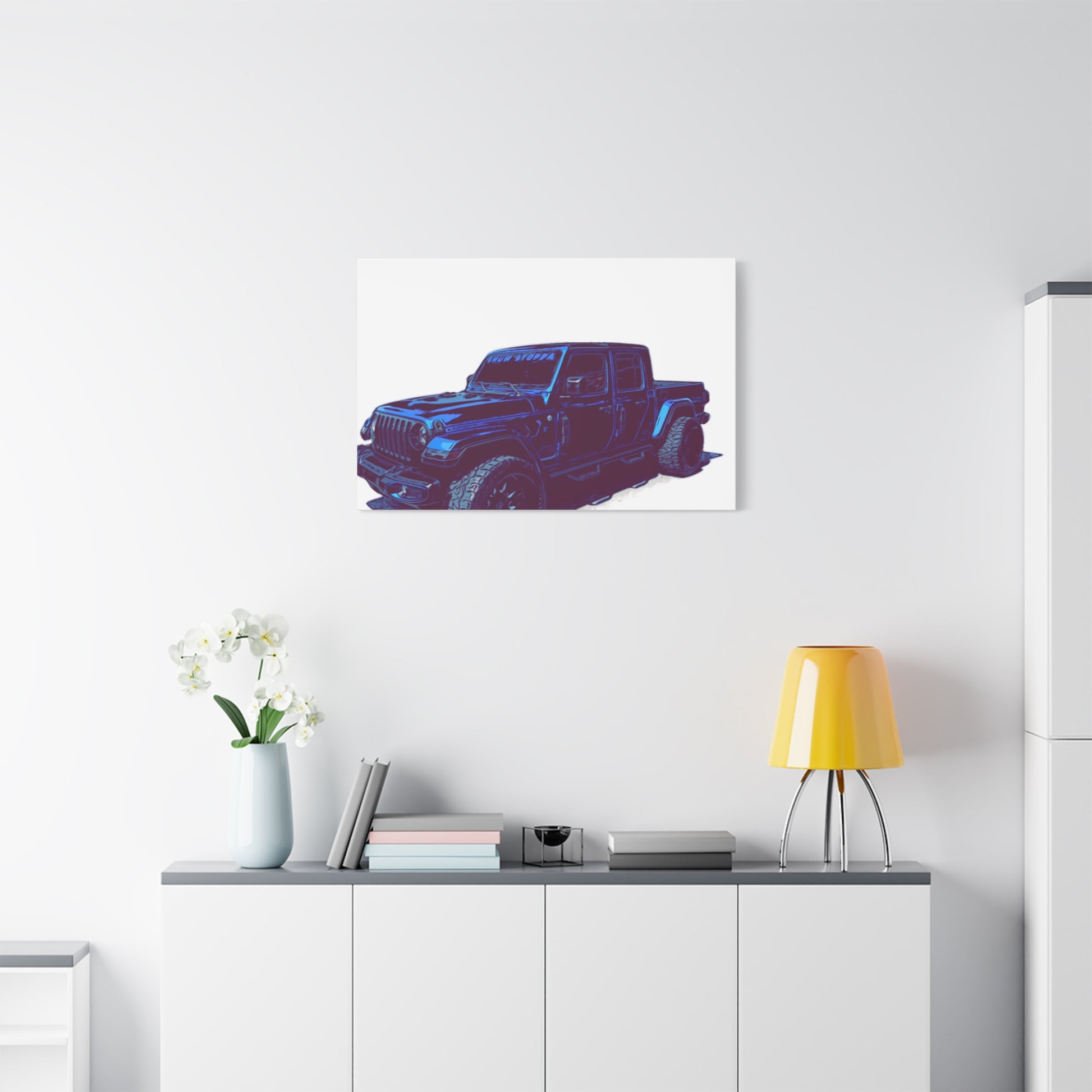 Show Stoppa is built for enthusiasts who love lifted builds, aggressive trucks, and bold automotive design. Whether you live for off-road culture or simply appreciate a truck that looks ready to conquer anything, this artwork brings raw presence to your wall.